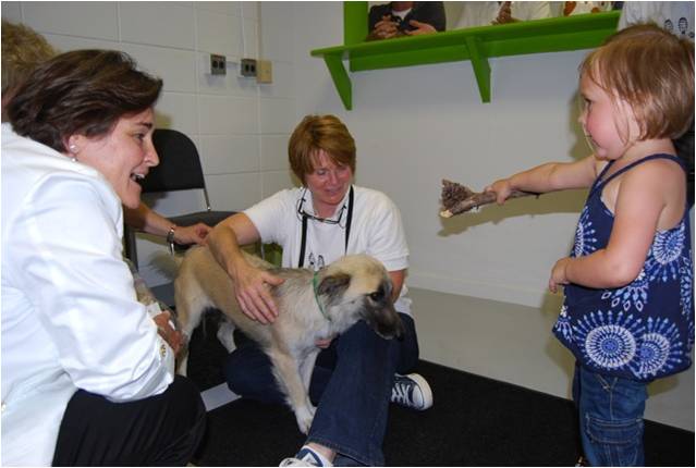 It was very emotional watching them arrive. Just the fact that it was a link to Kirsten, that she had touched and played with them and now they were here. The Blue Ridge Rescue Group is fostering Ellis and Vicki and Casey are adopting the mom. It was so much fun and totally chaotic. There were so many people there and we were even abel to Skype with Kirsten on Vicki's iPhone, so she got to participate some. She cried too (go figure). I am so proud of Kirsten and her accomplishment.